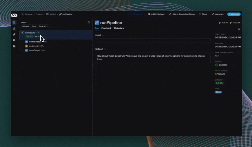LangSmith makes it easy to log traces with minimal changes to your existing code with the @traceable decorator in Python and traceable function in TypeScript.